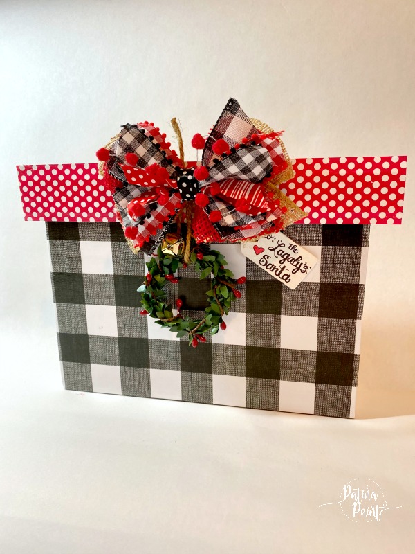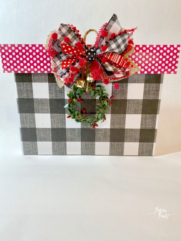 Once I had both the wreath and the bells put together, I glued them to the top of the present.